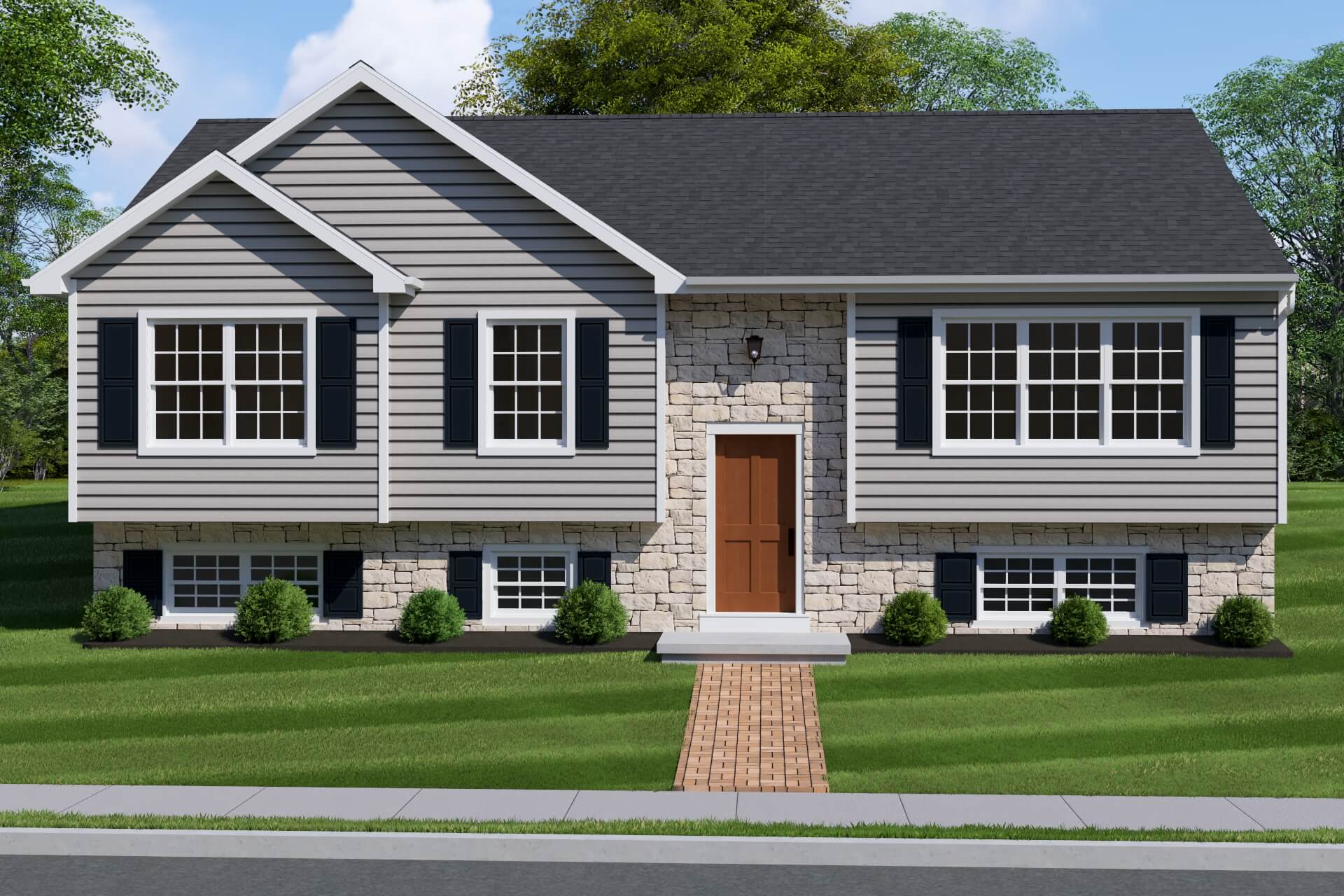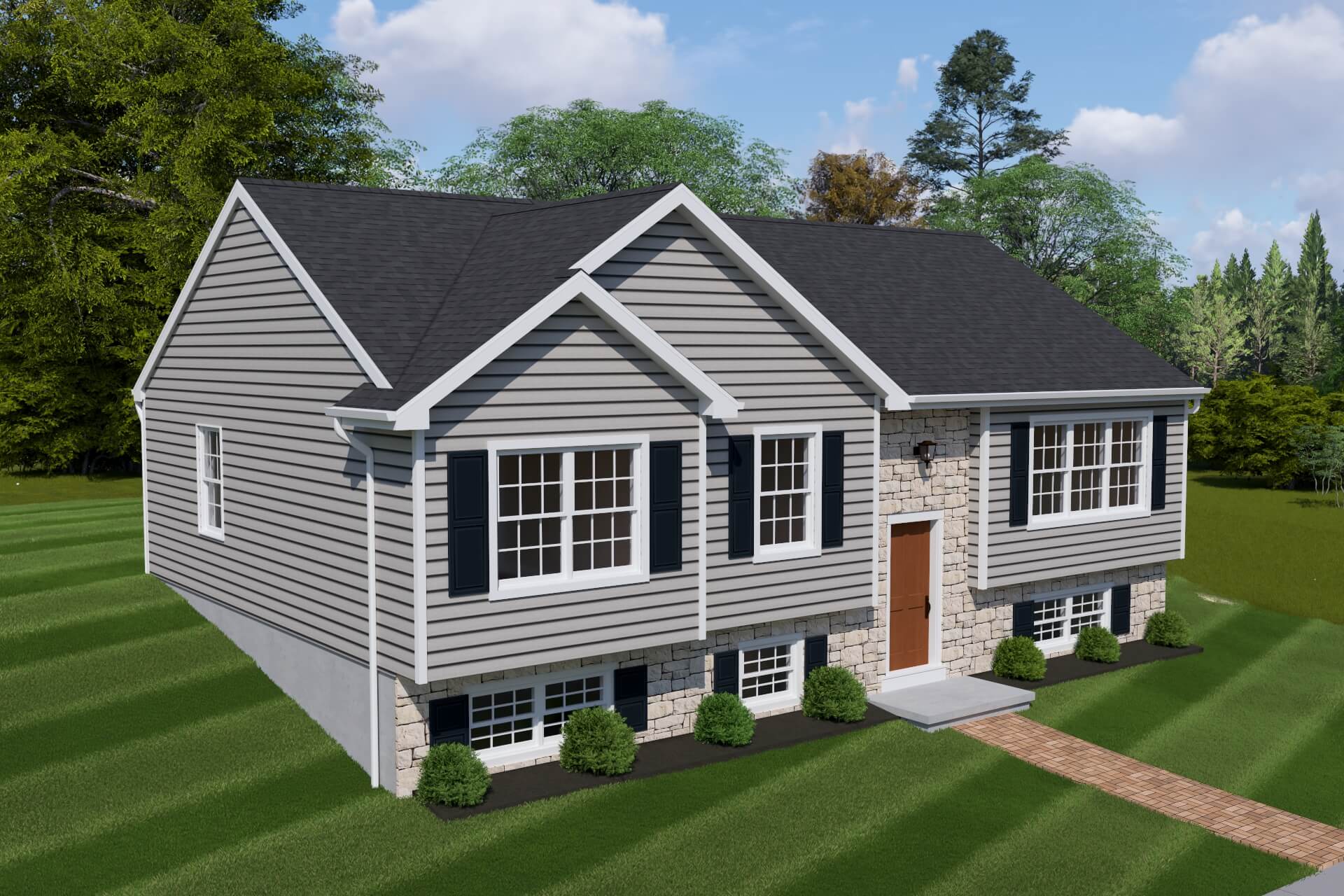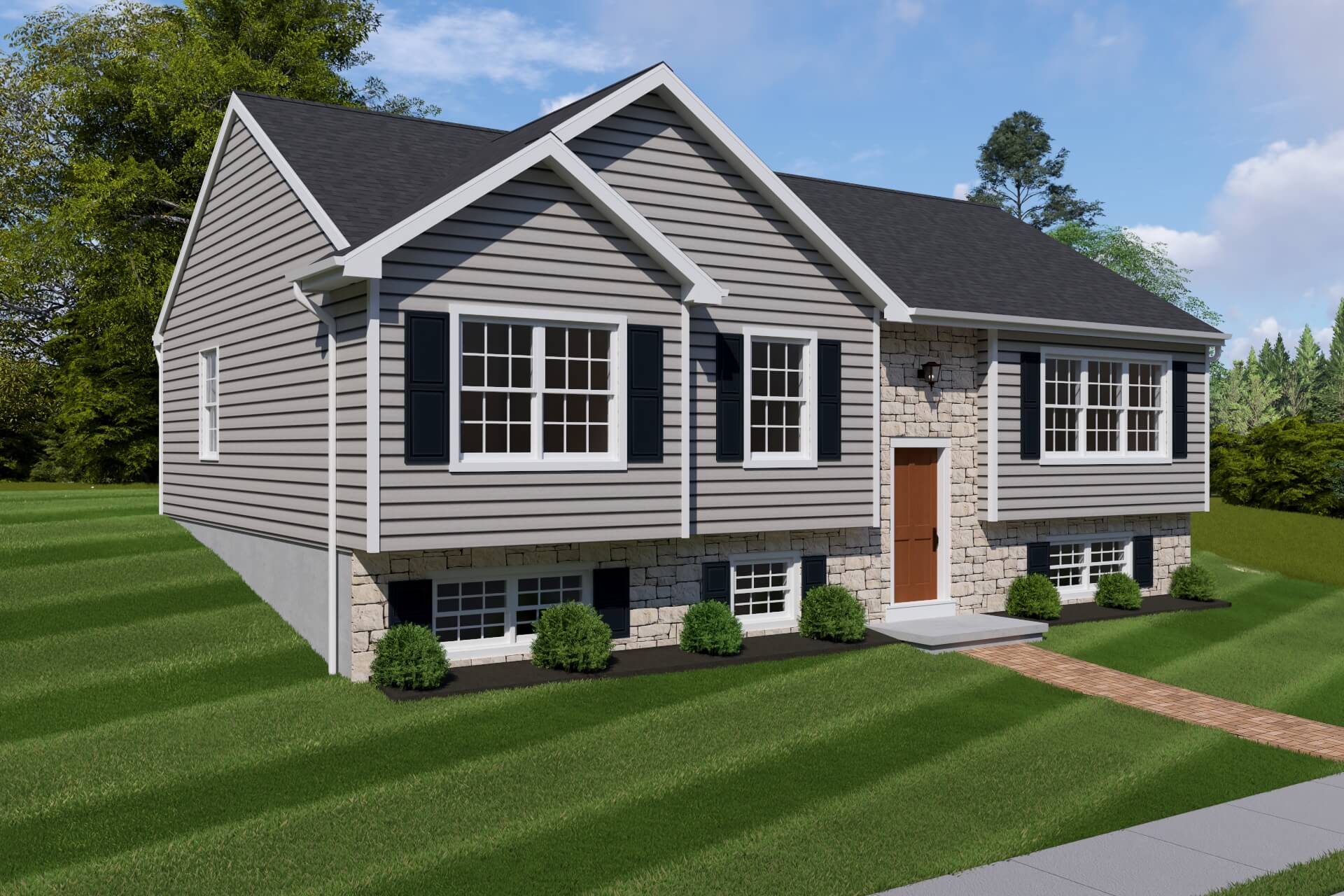 This bi-level home has tremendous curb appeal with two reverse gables and window heads. The stone and vinyl front are complementary to each other. There is a formal living room, and a dining room with a patio door leading onto your optional deck. The kitchen has abundant cabinetry and an area to accommodate your kitchen table. The master bedroom has a walk in closet. There are a total of 3 bedrooms and 1 bath.