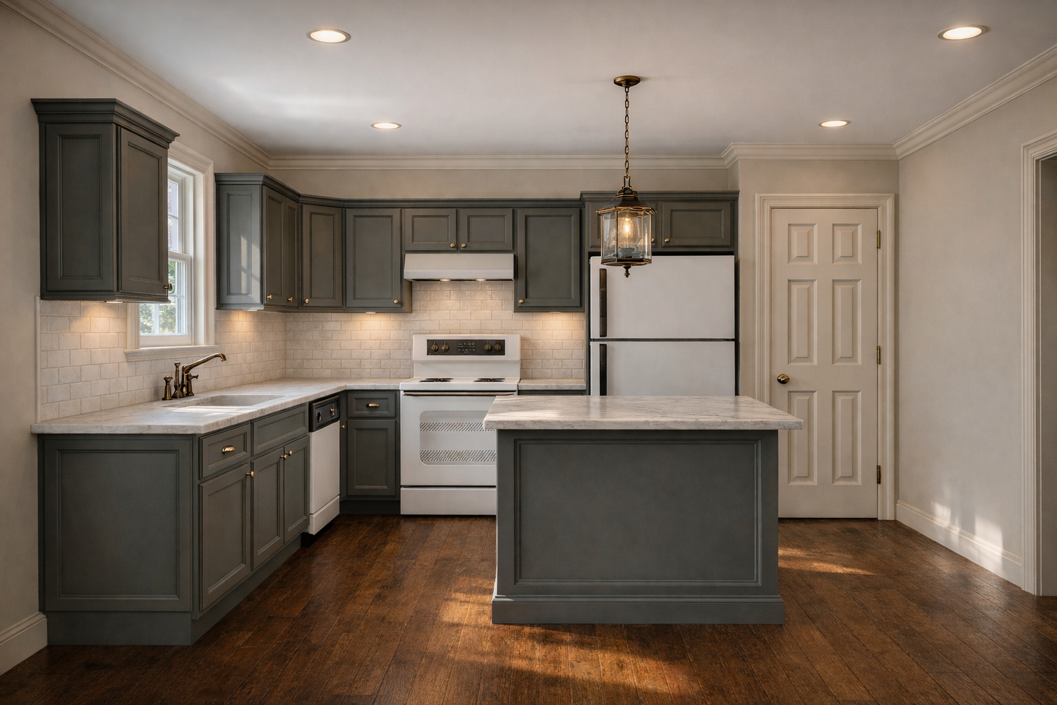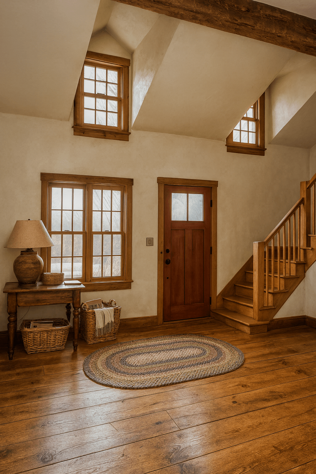 This home features a non-traditional 2 story layout. The front pent roof plus twin dormers add additional old world charm. The formal living room is located in the front of this home, leading to the dining area and the kitchen which has abundant space. Also if you like a fireplace is optional. The large master bedroom has a huge walk in closet, master bath with tub, shower and double bowl sink. There is a mud room off of the garage and the second floor has open railing over looking below. There are a total of 4 bedrooms and 2 ½ baths.
