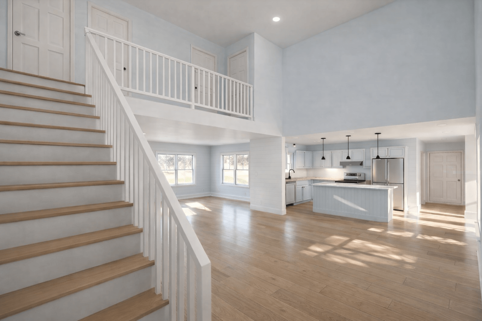 This modern farmhouse style home presents itself with a variety of rooflines and a large wrap around front porch with plenty of room for front porch rockers or outdoor furniture. The front entrance leads you directly into the open floor plan where you will find the Dining Room, Living Room and Guest Powder Room as well as formal Study Office area. The Kitchen has a window looking onto the front Porch with a large island. Just off of the Kitchen area there is a large Pantry, Eat in Nook and Laundry area. The two car Garage is placed toward the rear of the home, nicely situated close to the Pantry area for easy unloading of groceries. The Master Bedroom is located on the first floor with access to the private covered porch area to enjoy the outdoors with peace and quiet. The Master Bath includes a large Walk-In- Closet, His and Her Sinks and 6’ Fiberglass Shower. The second floor has a main bath and three additional Bedrooms along with a balcony allowing for an open view of the main Living Room area.