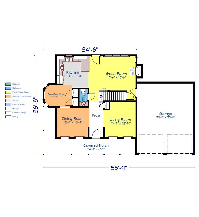 This home features a huge wrap-around porch with a beautiful stone facade. Despite the lack of shutters on this model the windows are enhanced with window trim for an informal appearance. There is also a peak in the roof line over the window on the second floor. The layout of this home has a unique center foyer with the dining room and living room gracing either side. The breakfast nook is unique with an abundance of windows. The kitchen area opens up to the great room with optional fireplace. The second floor features a huge master bedroom suite with soaking tub and walk in closet in the master bath. There is also a laundry area on this floor for your convenience. This home features 3 bedrooms and 2 ½ baths with the option of a 4th bedroom over the 2 car garage area.