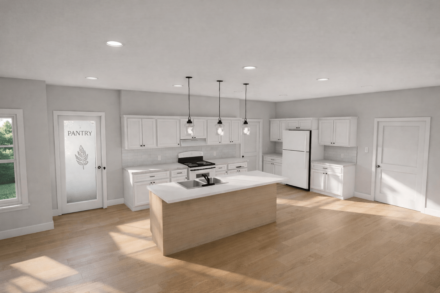 Welcome to the Meadowview, a modern farmhouse that boasts exceptional curb appeal. Notice the inviting front porch, adorned with cedar posts and intricate trim work. Stone details extend up to the window sills, enhancing its rustic charm. Step inside to discover a formal foyer, leading directly to a versatile den or billiard room. Adjacent to this, there’s a conveniently located powder room for guests. Further in, the layout opens into an expansive family room, which can include a cozy optional fireplace. The kitchen, a vision of modern efficiency, features a working island and ample storage in the walk-in pantry. Next to the kitchen, the mudroom and laundry facilities offer practical everyday utility as well as quick access to the two car garage. The first-floor master suite includes a luxurious bath with a freestanding tub, dual sinks, and a spacious shower. A large walk-in closet compliments the master bedroom perfectly. Moving upstairs, three additional bedrooms promise comfort and privacy. An office or study area provides a quiet space for work or relaxation. A full bath accommodates the needs of both family and guests. Overlooking the family room, the upstairs railing adds a touch of elegance, connecting the two levels beautifully. Discover the perfect blend of style and function in the Meadowview.