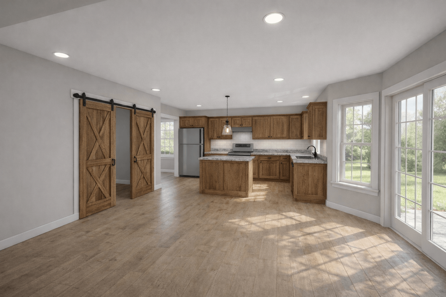 This country home is packed full of amenities. The reverse gable portion of the home magnifies the beauty of the large arch window. The porch with stone fasade is warm and inviting. Upon entering the two story open foyer you will find a front formal living room and dining room flanked on either side of the foyer. The main floor living area is very unique with its family room, with an optional fireplace soaring to the second story. The family room is open to the kitchen breakfast area which has a walk out bay and patio door to your future deck. This kitchen is enhanced with an island and a large builders pantry. The master bedroom is on the first floor with a walk in closet and master bath that has a whirlpool tub, shower and double bowl sink. The laundry room is located off of the master bedroom for your convenience. The stairway to the second floor is uniquely located in the family room with open railing. Upon arriving on the second floor, you find an actual bridge overlooking both the family room and foyer. The 2 car garage has four windows complimenting the front that includes sill height stone. There are a total of 4 bedrooms and 2 baths.
