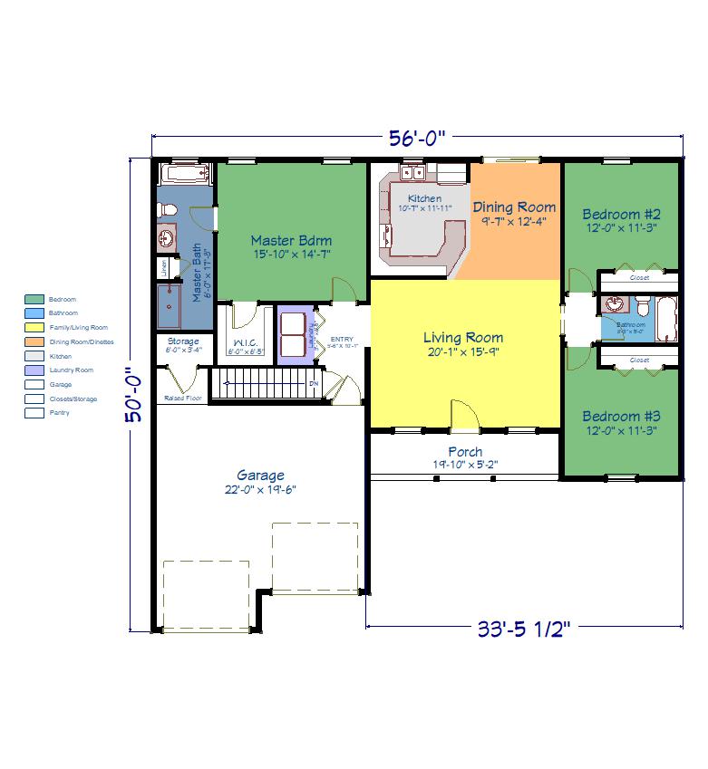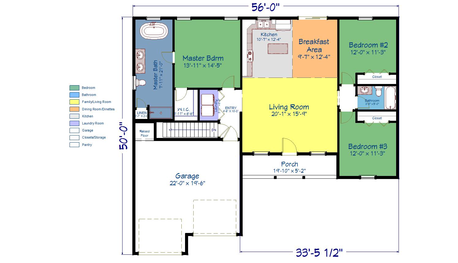 This cozy 3 bedroom, 2 bath rancher with a 2 car garage has it all in a simple floor plan. You enter the front of the house from a covered porch and are greeted by a huge great room. This fantastic room is the focal point of the house. Because of the open floor plan, from the great room you can view the kitchen and dining room . The kitchen features a peninsula which provides additional seating for guests. Another key point is that the master bedroom is on one side of the house while the 2 additional bedrooms are located on the other. The master bedroom includes a large master bathroom and a walk-in closet. The laundry area is located off the master bedroom for your convenience.