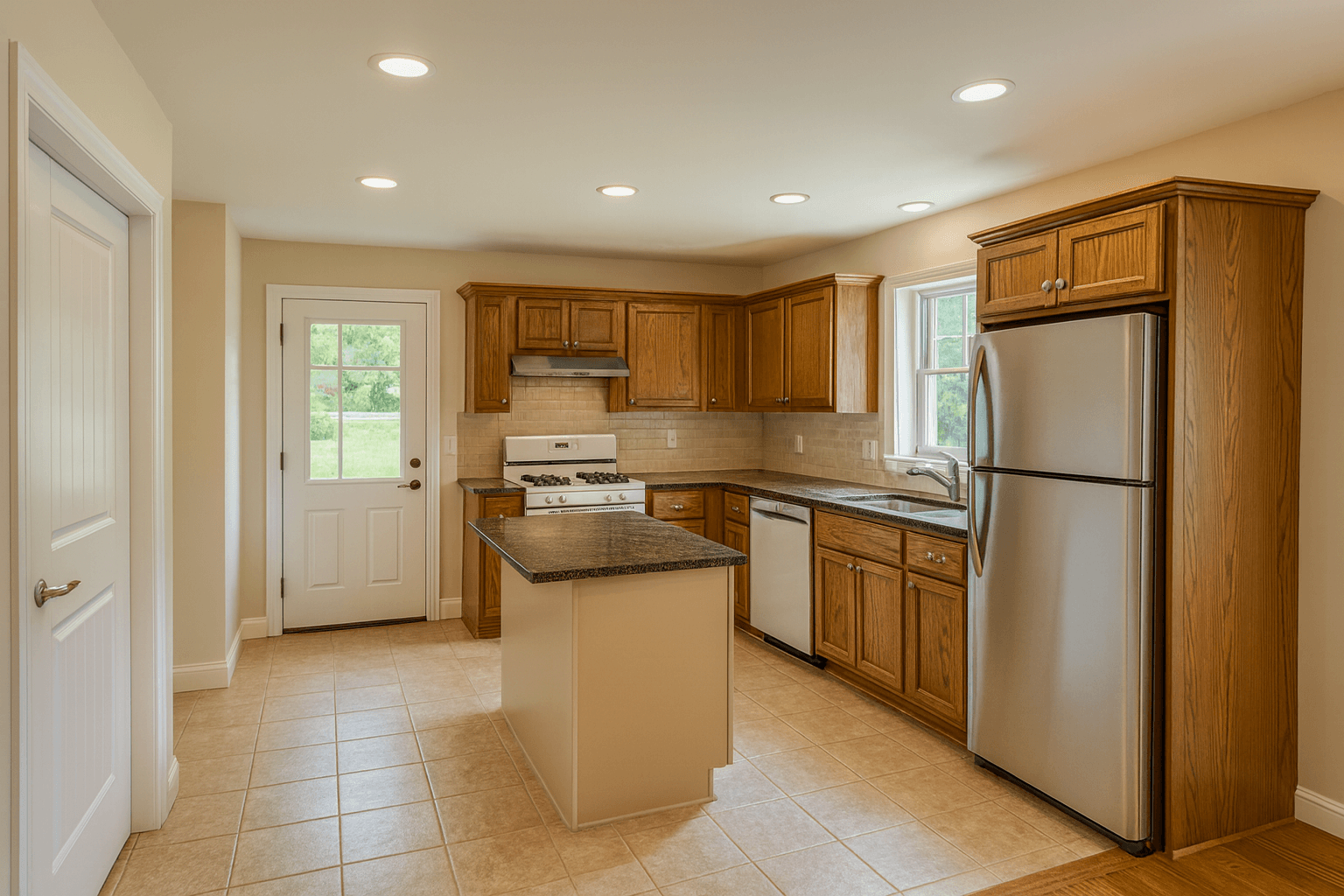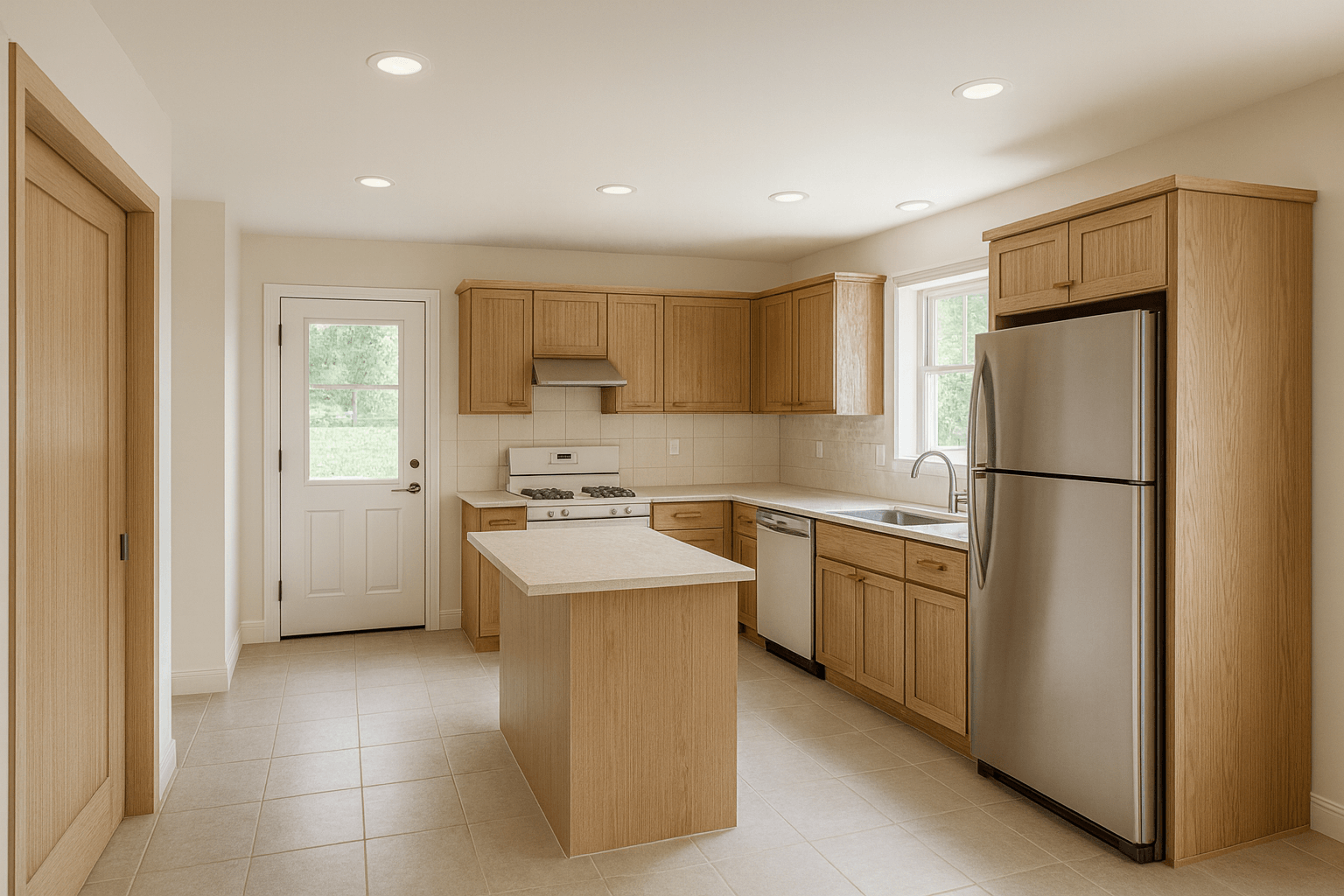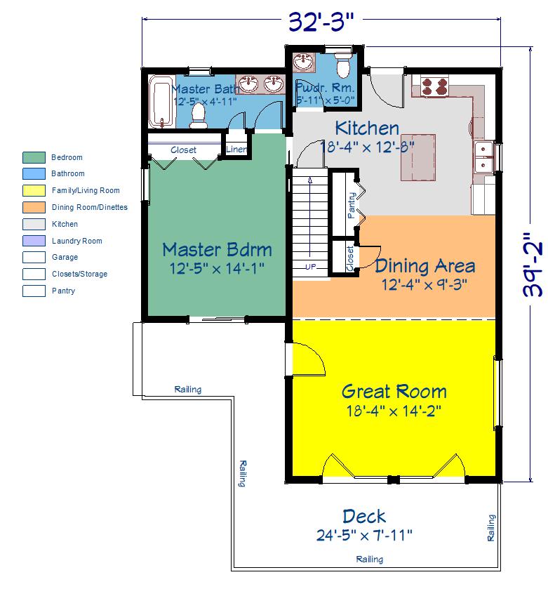 The Great Room seamlessly connects to the Dining Area and Kitchen, fostering both comfort and connection. The Kitchen features a convenient island, a Builder’s Pantry, and easy access to a Powder Room for guests.