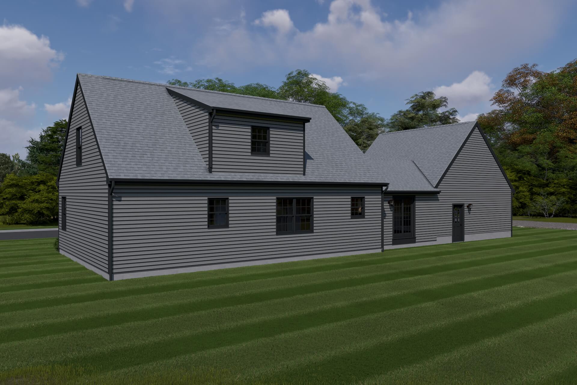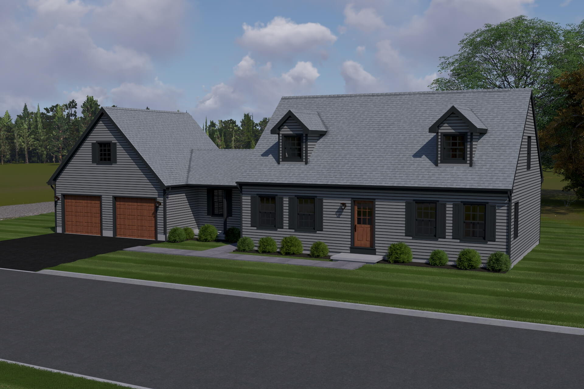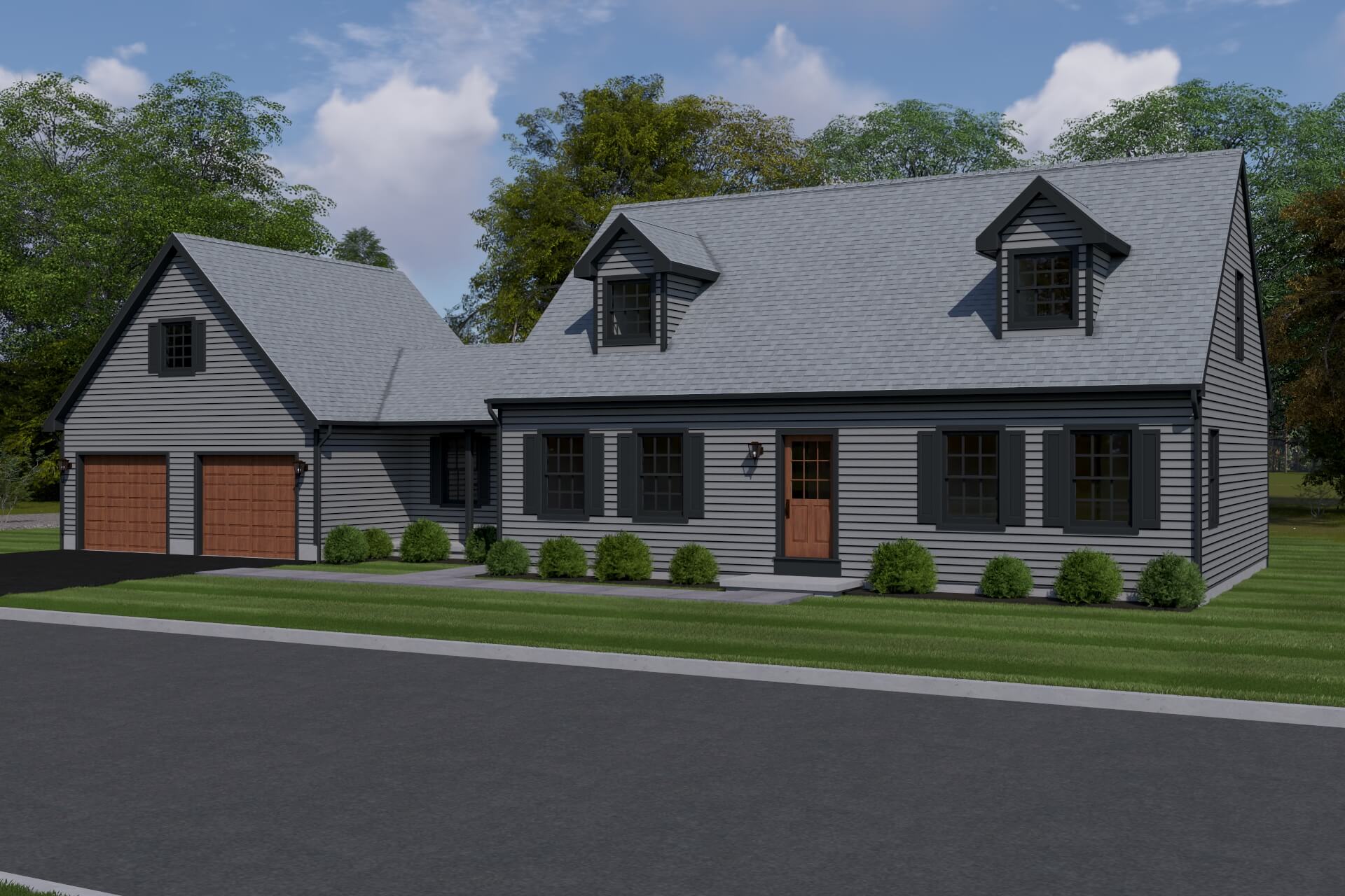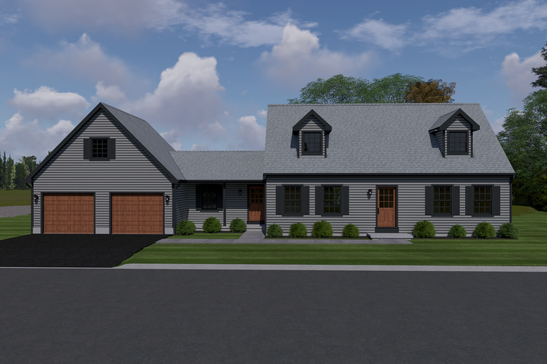 This cape cod home has an abundance of New England charm with its dentil moldings, two dormers, front porch at the family room and 2 car garage. The pilasters and pediment surround welcome you into the open foyer. There is a front formal living room that flows nicely into the kitchen dining room areas. The family room has an optional fireplace and country charm. The master bedroom is on the first floor and features a walk in closet and master bath. The second floor features two additional bedrooms, a walk in closet and full bath. There are a total of 3 bedrooms and 2 baths.